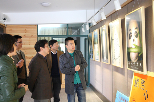 11月20日上午,我校党委副书记朱永康、组织部部长钟平、宣传部部长华金才在东方学院党委书记沃健、人文与艺术分院院长陆芸等人的陪同下来到东方学院人文与艺术分院展厅参观群众路线教育实践活动海报展。