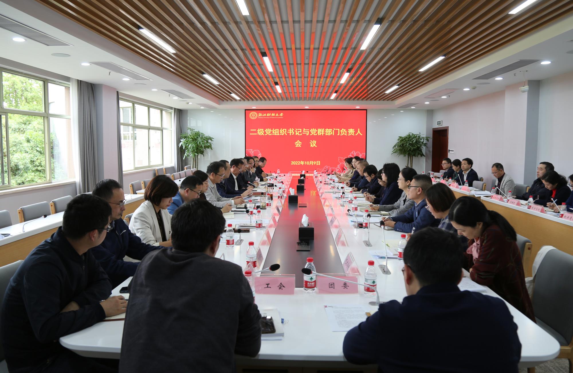 本网讯 10月9日,学校召开二级党组织书记与党群部门负责人会议。校领导班子成员李金昌、黄建新、余建森、孙旭东、申屠莉、楼胆群出席会议,各二级党组织书记、党群部门主要负责人参加会议。会议由校党委书记李金昌主持。